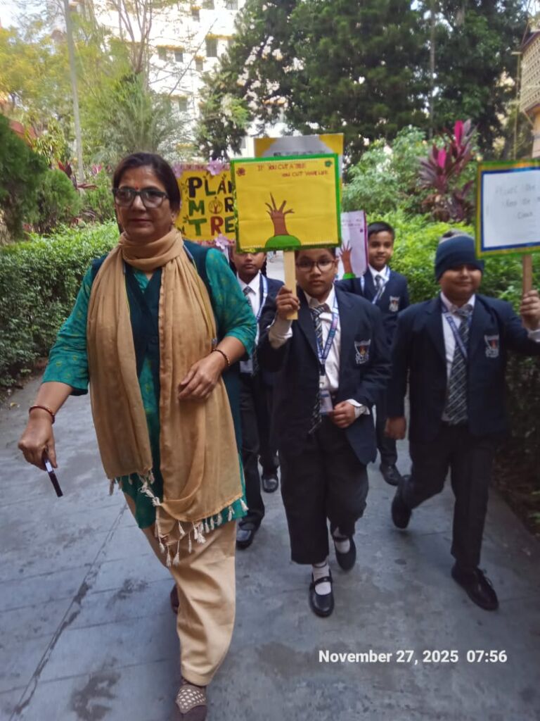 The celebrations began with an awareness walk on 27th November, where students stepped out into the nearby neighbourhood to talk about tree plantation and environmental protection. Speaking to residents, sharing leaflets, and answering questions helped students gain confidence, communication skills, and a sense of responsibility towards their surroundings.